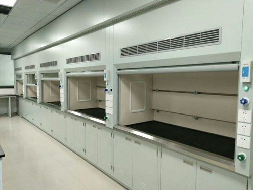 a.上部柜體(通風柜):采雙層結構,外層為鋼殼,內層為實驗室專用耐酸堿6 mm厚威盛亞或希瑪牌倍耐特板,具有防潮濕、防彎曲、抗沖擊等性能。對于需要在臺面進行洗滌的通風柜,其內襯板要滿足抗潮和抗腐蝕要求.外殼與內襯間夾層,可容納水、電、氣體管線系統,并可確保柜體氣密與防護;